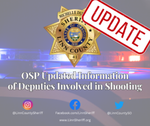 Pursuant to Linn County Use of Deadly Force (SB 111) protocols, the Oregon State Police is investigating the officer-involved shooting, and any involved law enforcement members have been placed on paid administrative leave by their respective agencies. Any further information will be released by the Linn County District Attorney or the Oregon State Police.